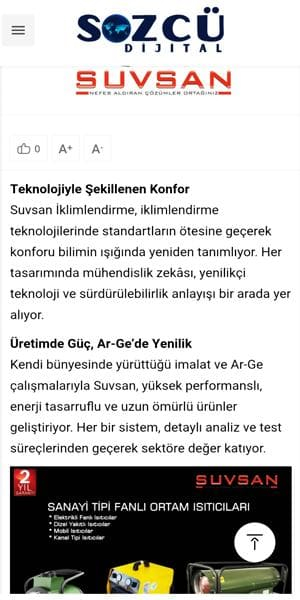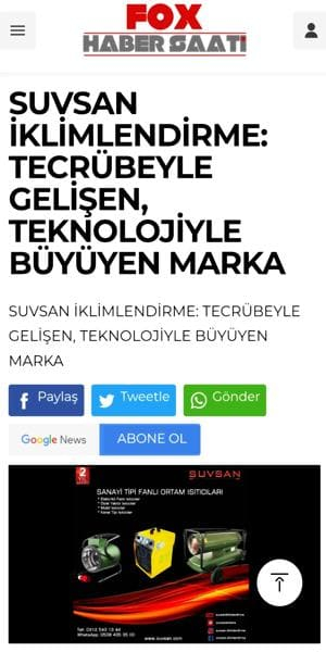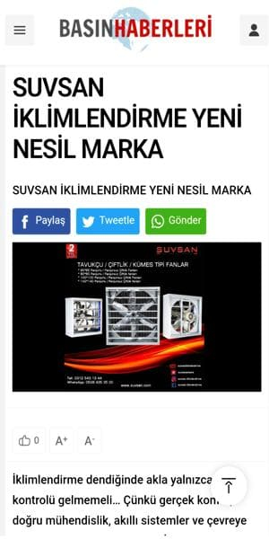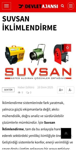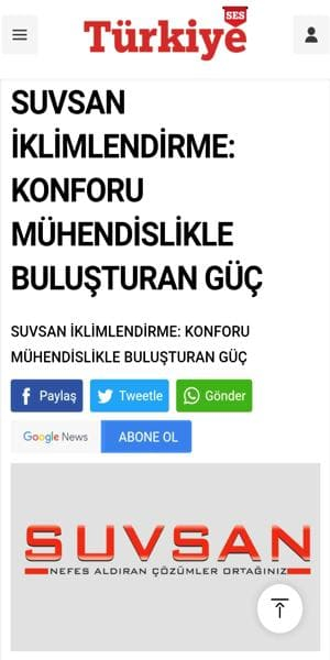 Haber Medyalarında SUVSAN İKLİMLENDİRME